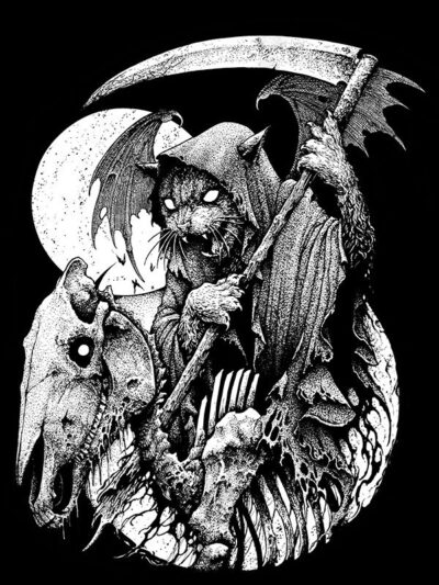 The illustrated plates of Robert Borbàs are a synthesis of what stirs him most deeply: the dark, grotesque side of tattoo, the illustrations of Gustav Doré and the etchings of Albrecht Dürer – masterfully given a contemporary twist.