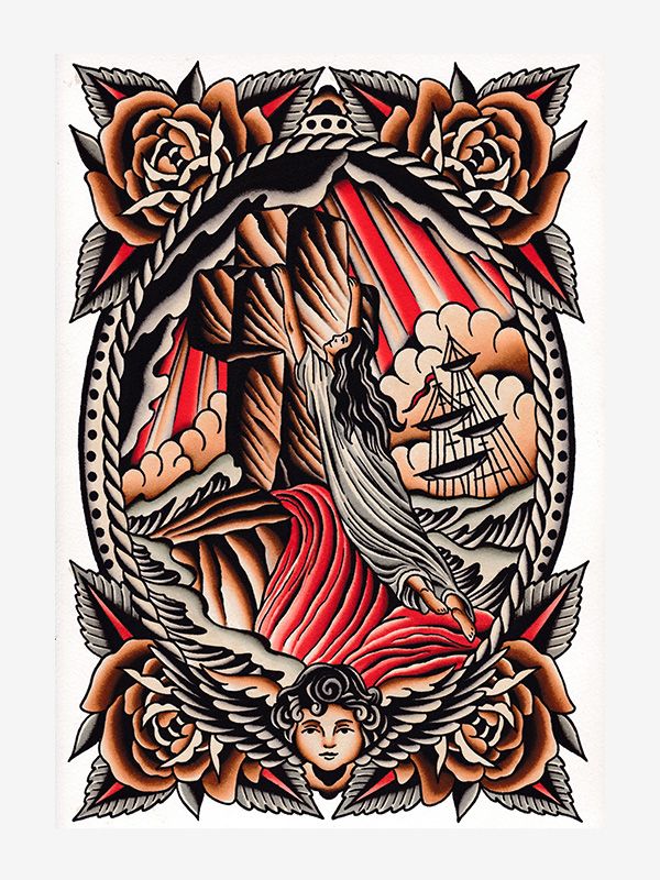 Among the few in Europe who has managed to put his own mark on this style, the work of Samuele Briganti clearly speaks the language of Traditional, totally two-dimensional with heavy outlines and a strong colour palette largely composed by yellows, rich reds, dark green and black.