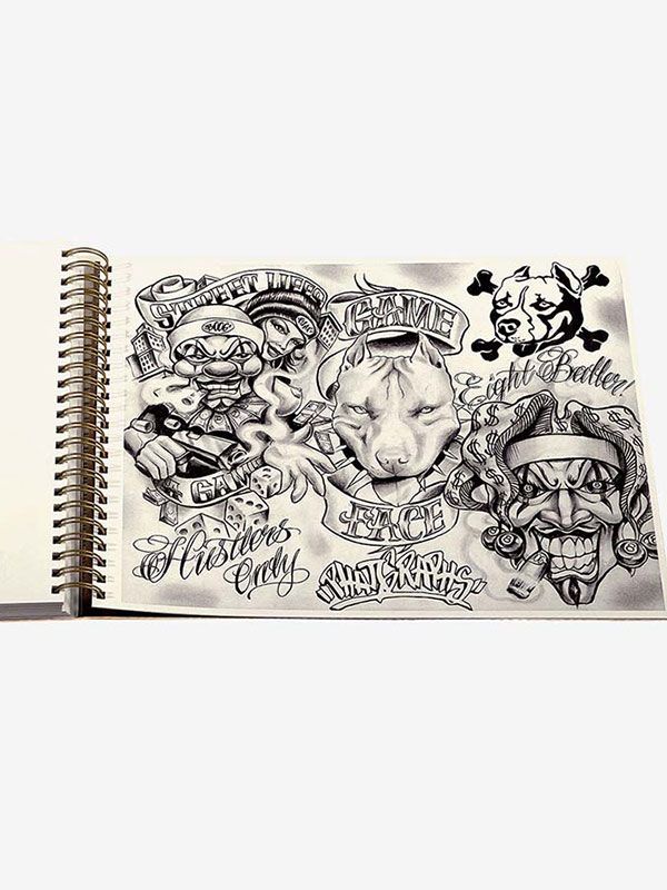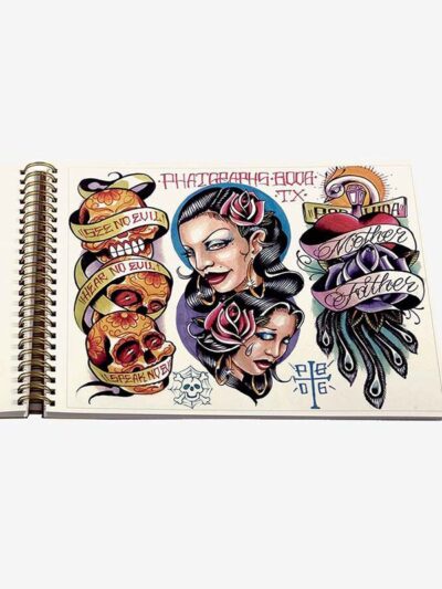This long-awaited book takes you on a journey through 1000 explosive black-and-white and color designs of tattoo flash by the master of the American Chicano-style tattoo. Sexy and armed ladies, street life in a hot melting pot that becomes the setting of gangsta rap, a noir film set in a land filled with strong emotions. The volume includes the artist’s most recent drawings as well as his classics. It also features his famous script, making the book a complete reference not only for the Chicano-style, but for custom lettering as well.