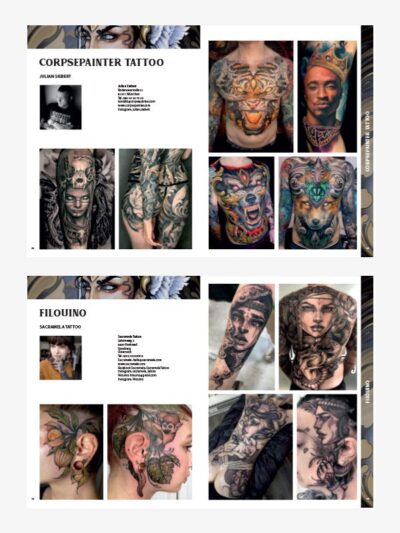 Get some new inspirations from the work by well established artists, as well as by lots of new and hot young artists, with new ideas and fresh styles. The high quality of the artists who are represented in the yearbook makes the magazine a collectable, which tattoo-fans will use for a long span of time to look for the perfect artist for their next tattoo-project.