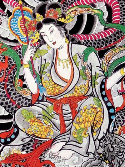 Horihide (Hideo Kakimoto) is one of the leading exponents of “Horimono“, or the traditional Japanese tattoo, and is unanimously considered a reference point for modern tattoo-artists. His style takes inspiration from the traditional Japanese Ukiyo-e prints and most of his subjects are a re-interpretation of the prints adapted to the human body.