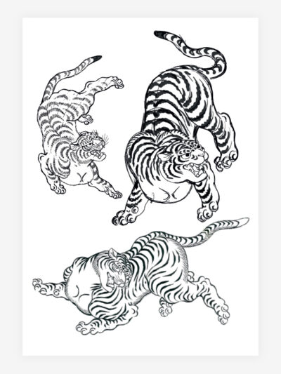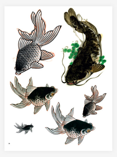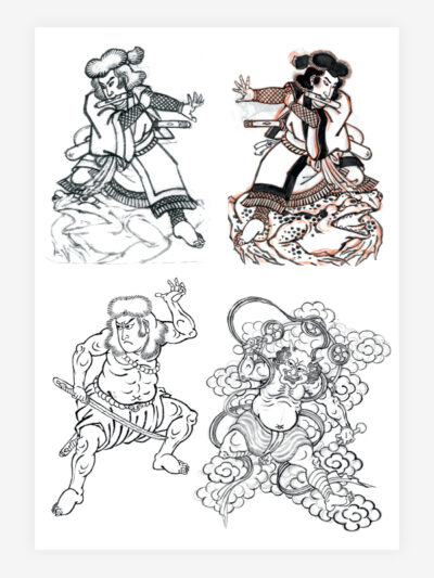 Real and imaginary animals such as cats, koi carp, foxes, frogs, Fudo, snakes, crabs, tigers, and spiders in countless different poses and movements, studied up close in detail and full length.
