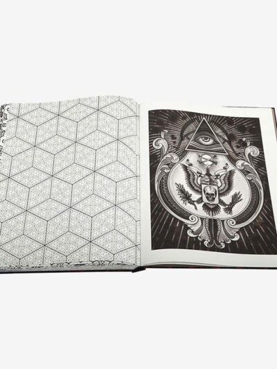 This is the first book ever published dedicated to his work. In these 200 pages he chose to collect and present his most significant works from the last ten years, including sketches and preparatory drafts that offer an exclusive insight into his creative process. His work is presented in double-page spreads that feature the same subject in outline form alongside its final colour version. This layout highlights the precision of his linework and the symbolic depth of his creations, which emerge in all their power.