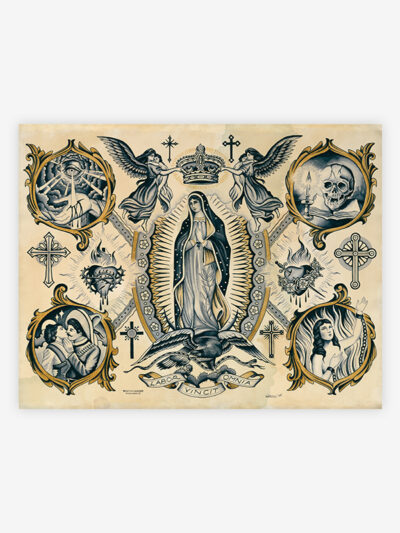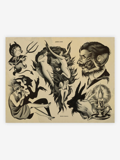 The illustrated plates in Spider Murphy’s Tattoo Flash Vol. 3 reveal a world where the clock stopped a few centuries back, a visual container packed with ideas, inspiration, animation and graphics to dip into as if they were a font to choose to compose timeless new words.