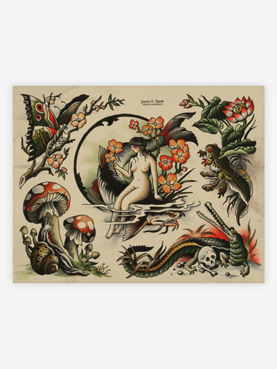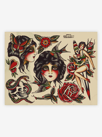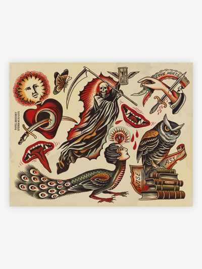 110 previously unpublished plates specially created for this great new publication from Tattoo Life in collaboration with the tattoo shop in San Rafael, California, Spider Murphy’s: Theo Mindell, Haley McCann, John A. Geltz, Justin E. Davis, Paul Anthony Dobleman, Pavel Brodsky, Weston Imhoff, Joy Armstrong, L. Rose.