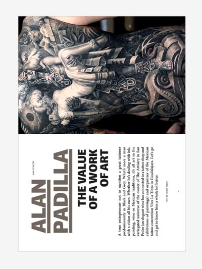 Chat at the top with Alan Padilla, black and grey tattoo artist fusing Mexican and LA culture;