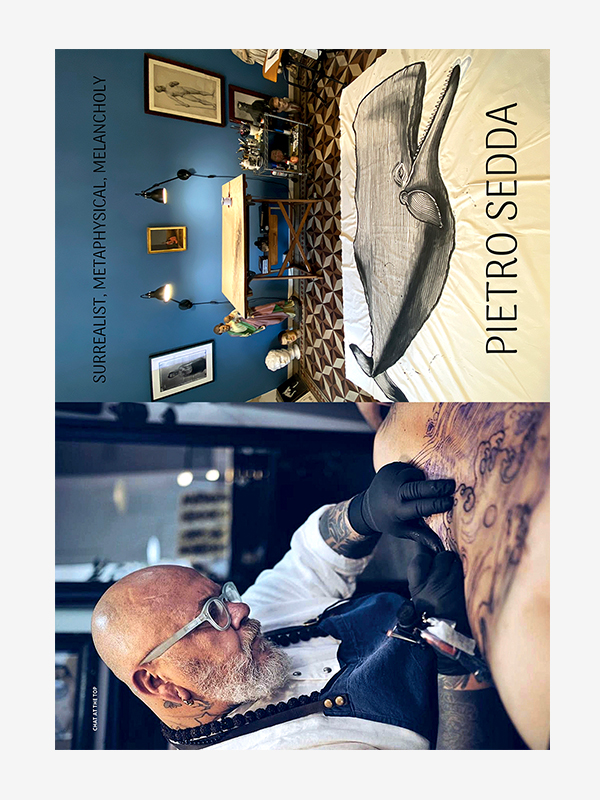Chat at the top with Italian Pietro Sedda and his Surrealist, metaphysical, melancholy tattoos;